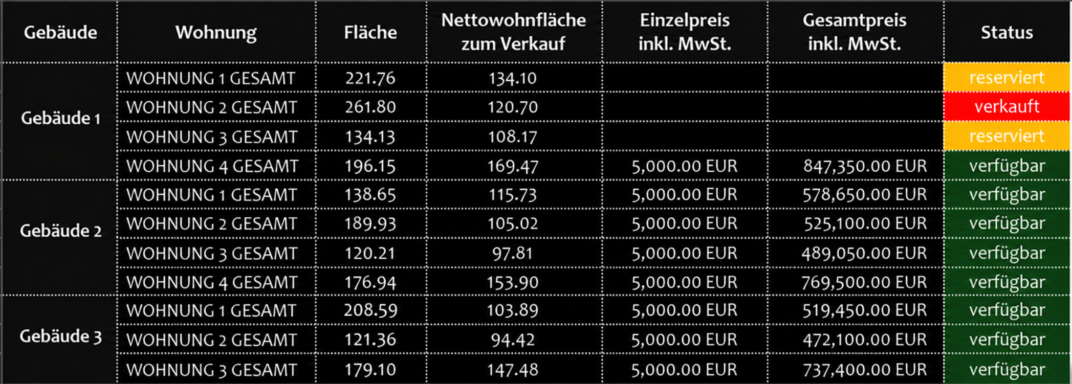 Aufteilung und Verfügbarkeit / Gebäude 3